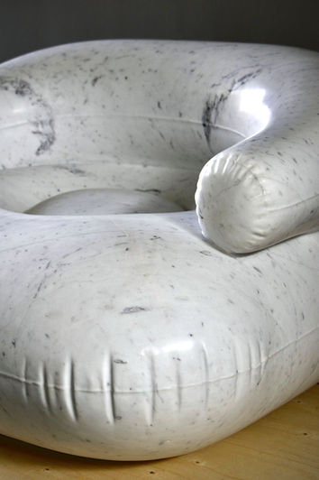 Freddy Marbic believes that he is made of plastic, and what he believes is his truth, reflective of the era we currently inhabit. Despite being a solid, handcrafted marble sculpture weighing 600 kg, resembling a plastic inflatable chair, Freddy's perception remains fixed. The essence of my artwork lies in the concept that Freddy steadfastly maintains his belief in being made of plastic, despite the reality of his composition being solid white marble. Even when confronted with this fact, he obstinately denies it. Thus, Freddy is perceived as being made of plastic. This narrative underscores the contemporary tendency to accept opinions as irrefutable truths. Freddy serves as a reminder to maintain a critical perspective on the world around us, highlighting that not everything is as it initially appears.